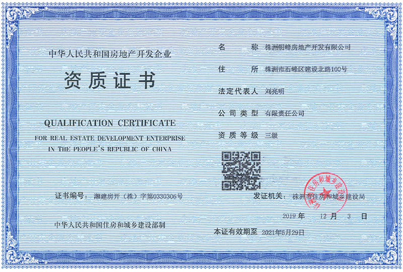 明峰房產(chǎn)三級(jí)資質(zhì)證書(shū)