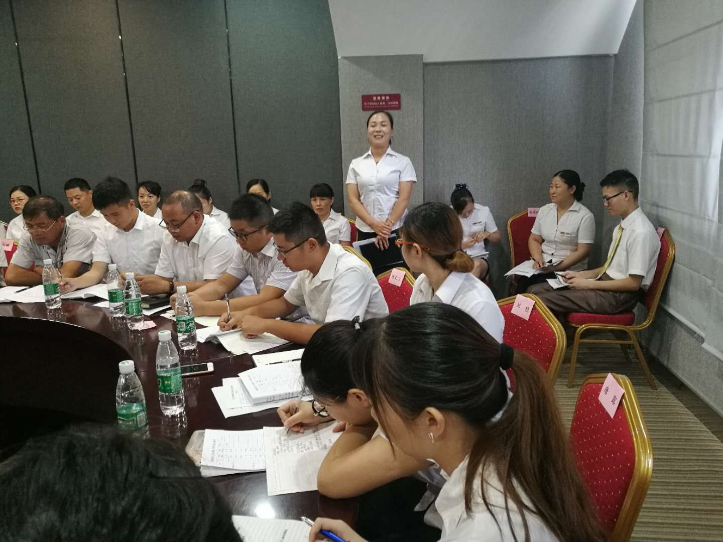 會(huì)上首先全體員工一起學(xué)習(xí)了明集2018【10】號(hào)文《關(guān)于老帶新、師帶徒以及員工練好字的規(guī)定》。