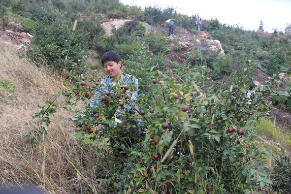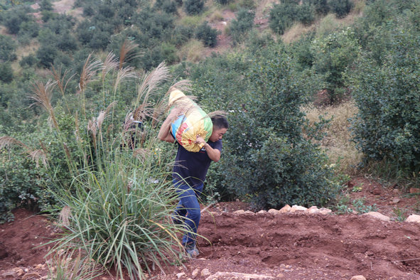 碩果累累壓彎了枝頭,心里樂開花,采摘起來可有勁了。