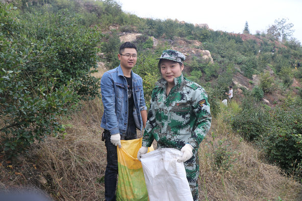 清晨7點30分集團全員集合于明峰生態(tài)園門樓,大家準備好采摘工具,有的身著迷彩服,興致勃勃的通往上山采茶的道路。