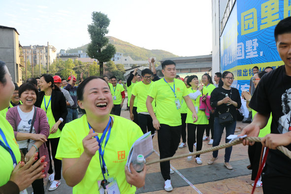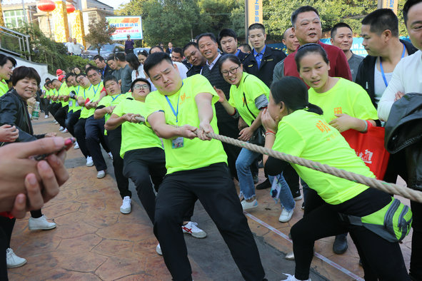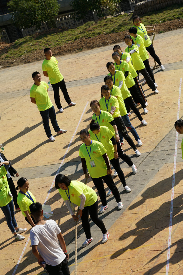 明峰庭院設(shè)賽場,拔河競賽助威酣。