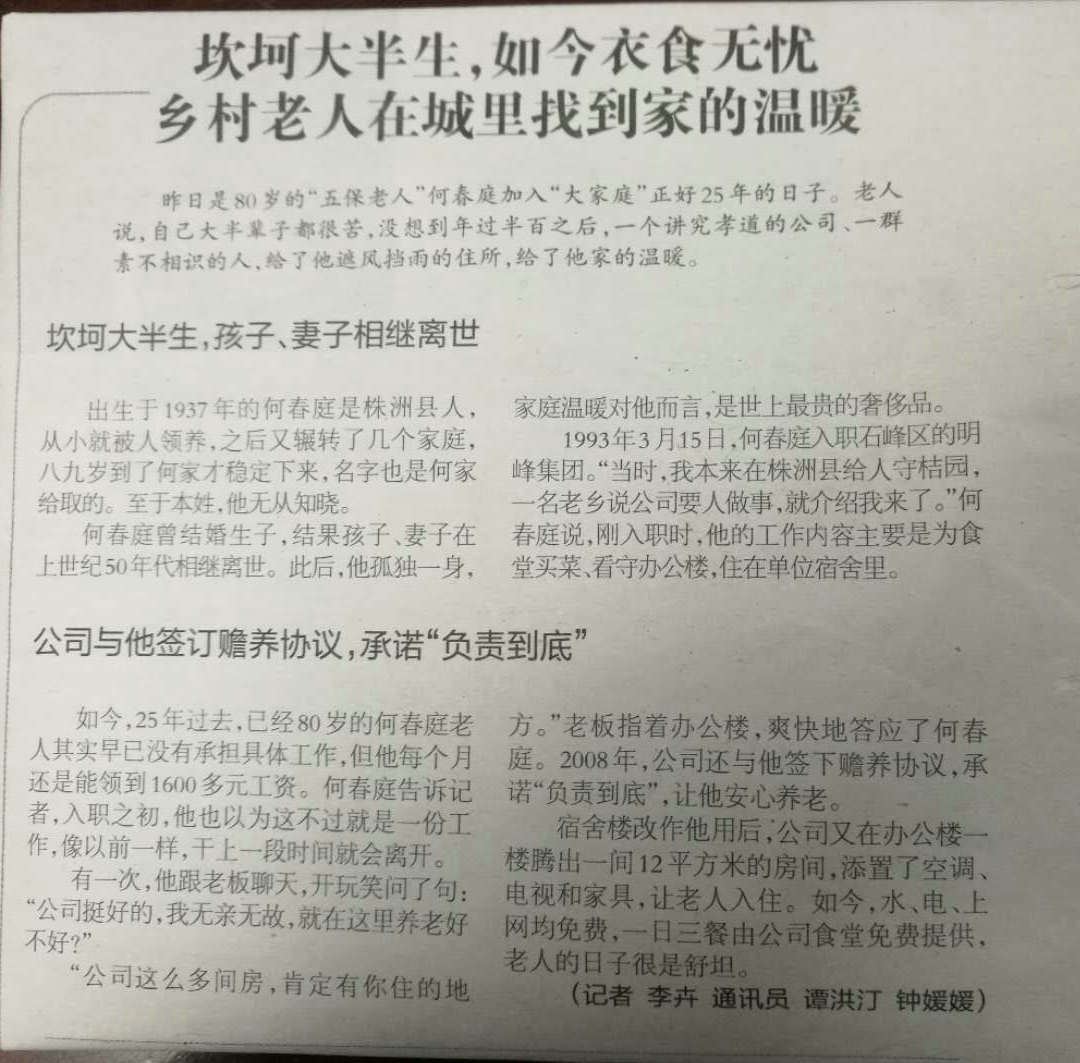 2018年3月16日株洲晚報 報道坎坷大半生,如今衣食無憂 鄉(xiāng)村老人在城里找到家的溫暖